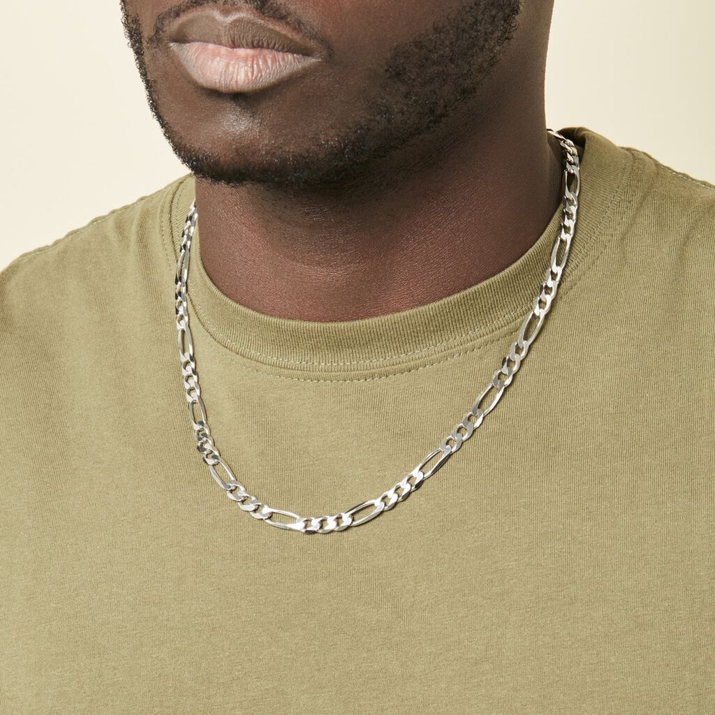 Collier Argent Blanc 925/1000 Maille Alternee 1/3 Epaisseur 6.8mm 55cm