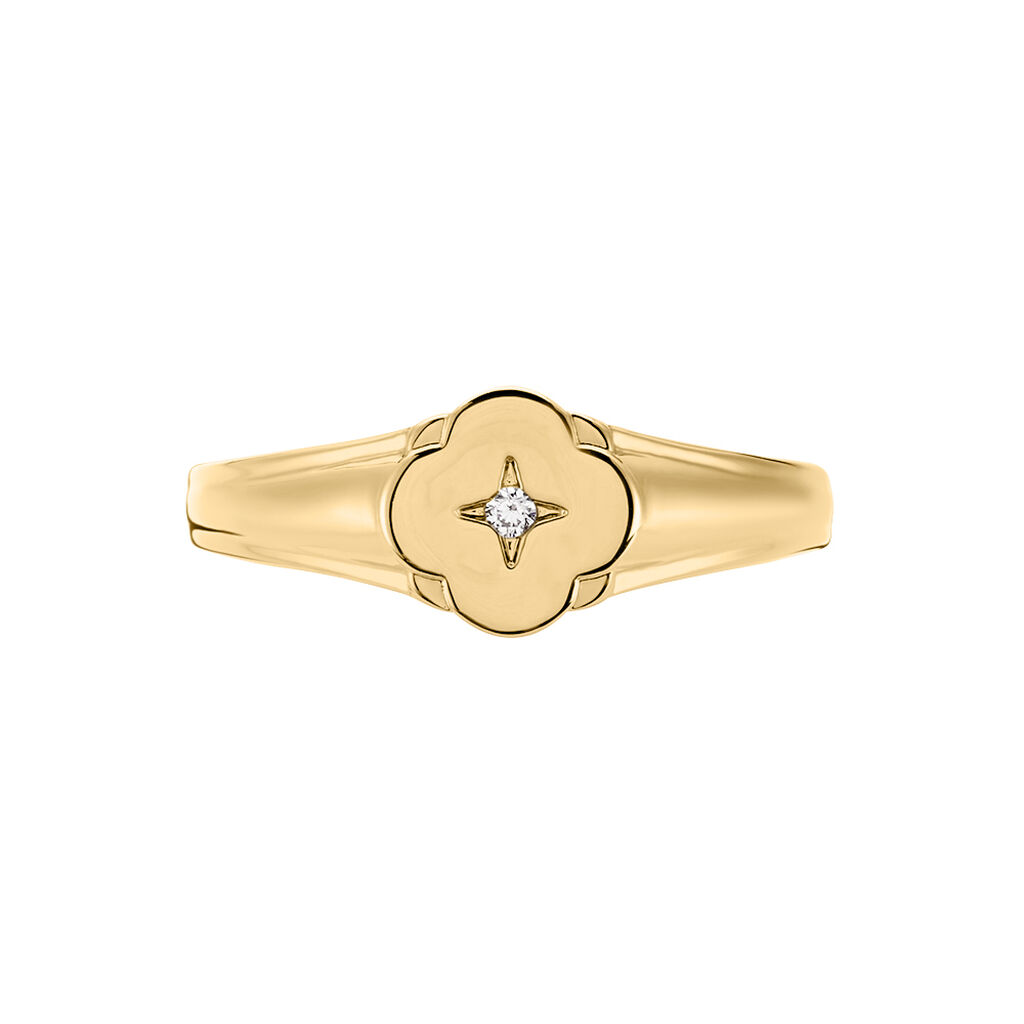 Chevalière Plaqué Or Jaune Plateau Forme Trèfle Oxydes De Zirconium