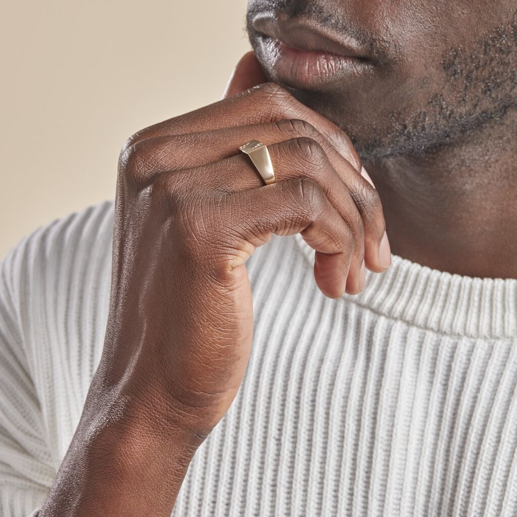 Chevalière Plaqué Or Jaune Forme Rectangulaire Triangles Oxydes De Zirconium