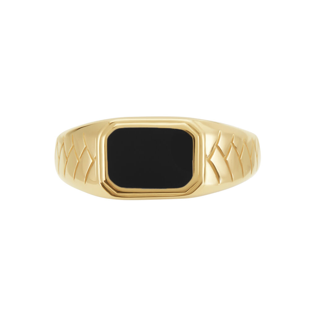 Chevalière Plaqué Or Jaune Carré Email Noir Corps De Bague Chevrons