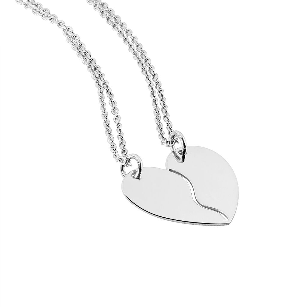 Collier Argent Blanc 925/1000 Cœur Sécable Amitié / Amour Double Maille Forçat 42cm