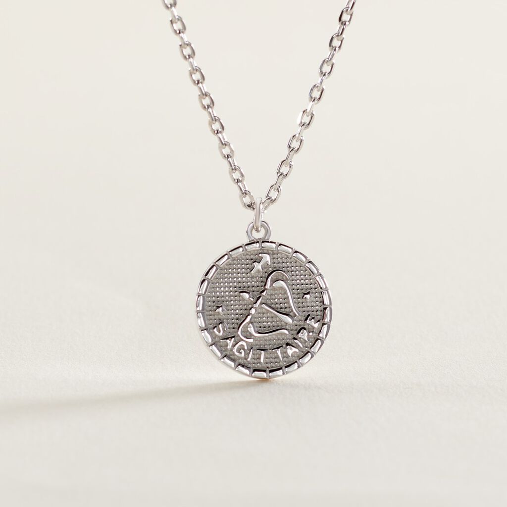 Collier Argent Blanc 925/1000 Pastille Signe Du Zodiaque Sagittaire Maille Forcat 55cm