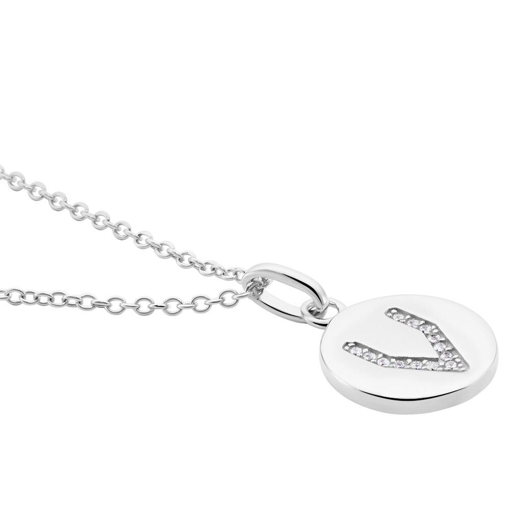 Collier Argent 925/1000 eugenien Pendentif Lettre V Pavage Oxydes De Zirconium Maille Forcat 45cm