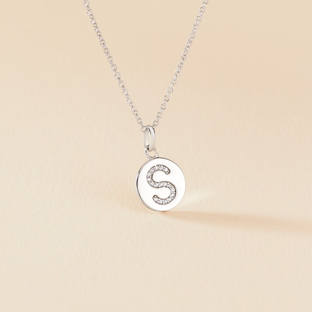 Collier Argent 925/1000 eugenien Pendentif Lettre S Pavage Oxydes De Zirconium Maille Forcat 45cm