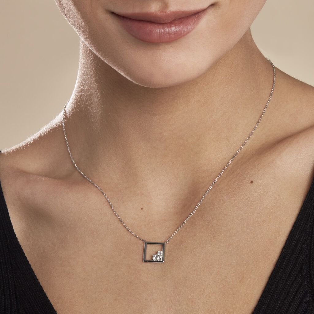 Collier Argent 925/1000 mettild Carre Ajoure Serti Griffes Oxydes De Zirconium Maille Forcat 42+3cm