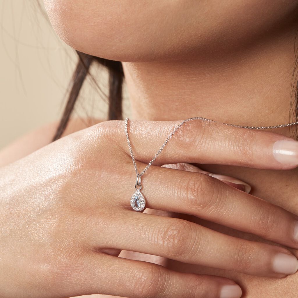 Collier Argent 925/1000 tania Goutte Bleue Entourage Sertis Griffes Oxydes De Zirconium Maille Forçat 45cm
