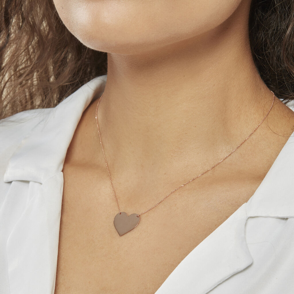 Vous serez chic et féminine avec ce collier en or rose 375/1000ème. Il sublime vos tenues de manière élégante. Composé d’une chaîne maille forçat et d’un motif cœur gravable, il vous permet d’avoir un style personnalisé. Ce modèle est aussi proposé en or blanc et jaune.