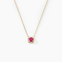 Collier Or Jaune 375/1000 Saphir 0.33cts Serti Griffes Entourage Diamants Maille Forcat 40+2cm