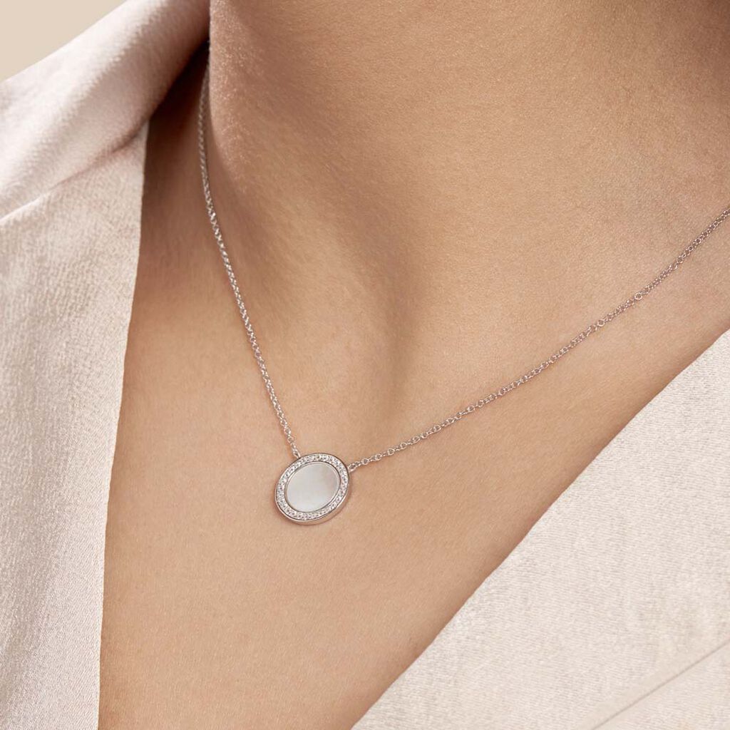 Collier Court Argent Blanc 925/1000 Cercle Nacre Entourage Oxyde De Zirconium Microsetting 38cm