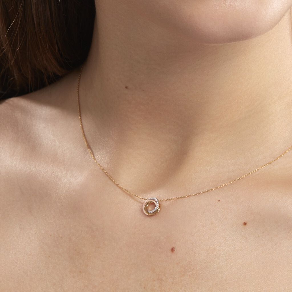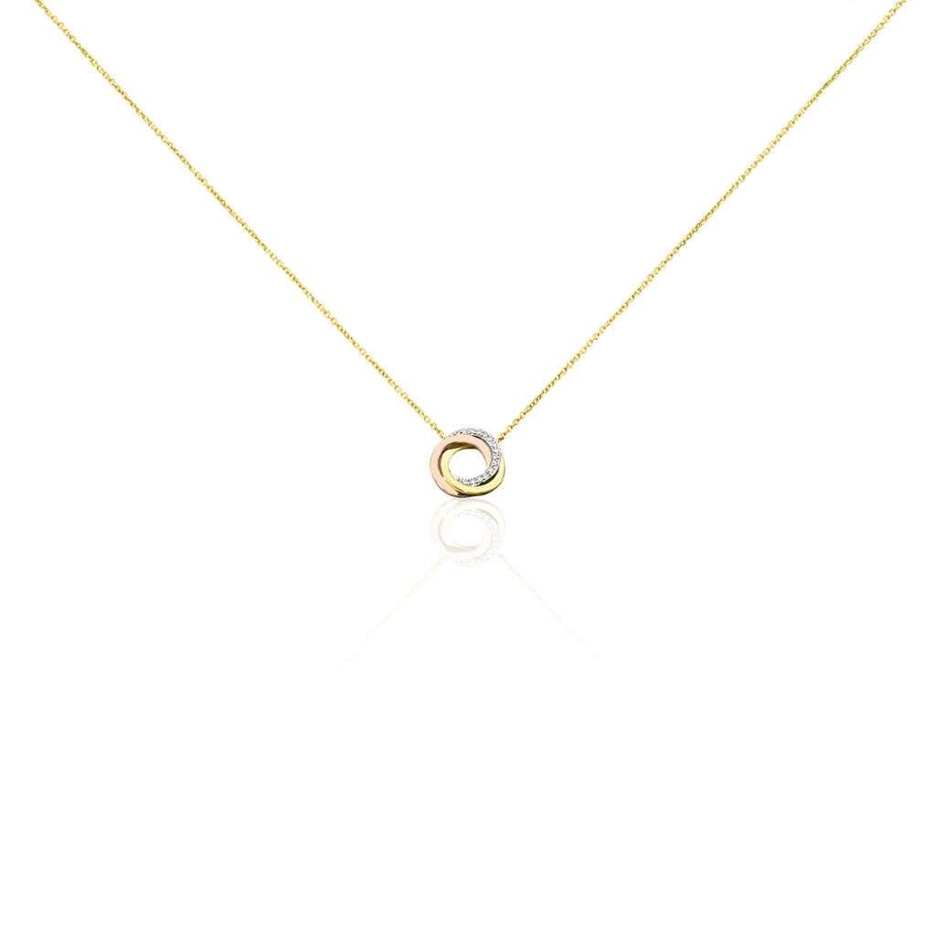 Collier Or Tricolore 375/1000 Cercles Entrelaces Diamants 42cm