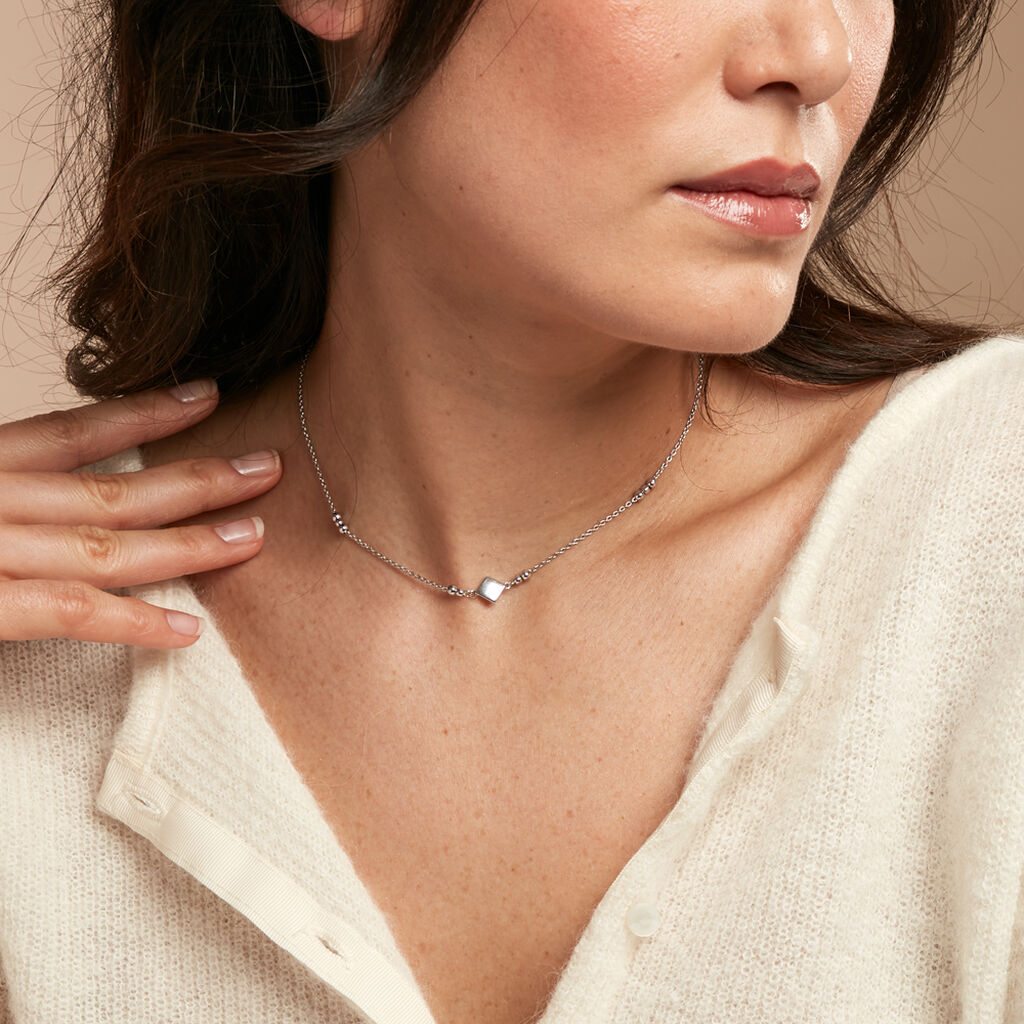 Collier Argent Blanc 925/1000 Losange Et Boules Maille Forcat 45cm
