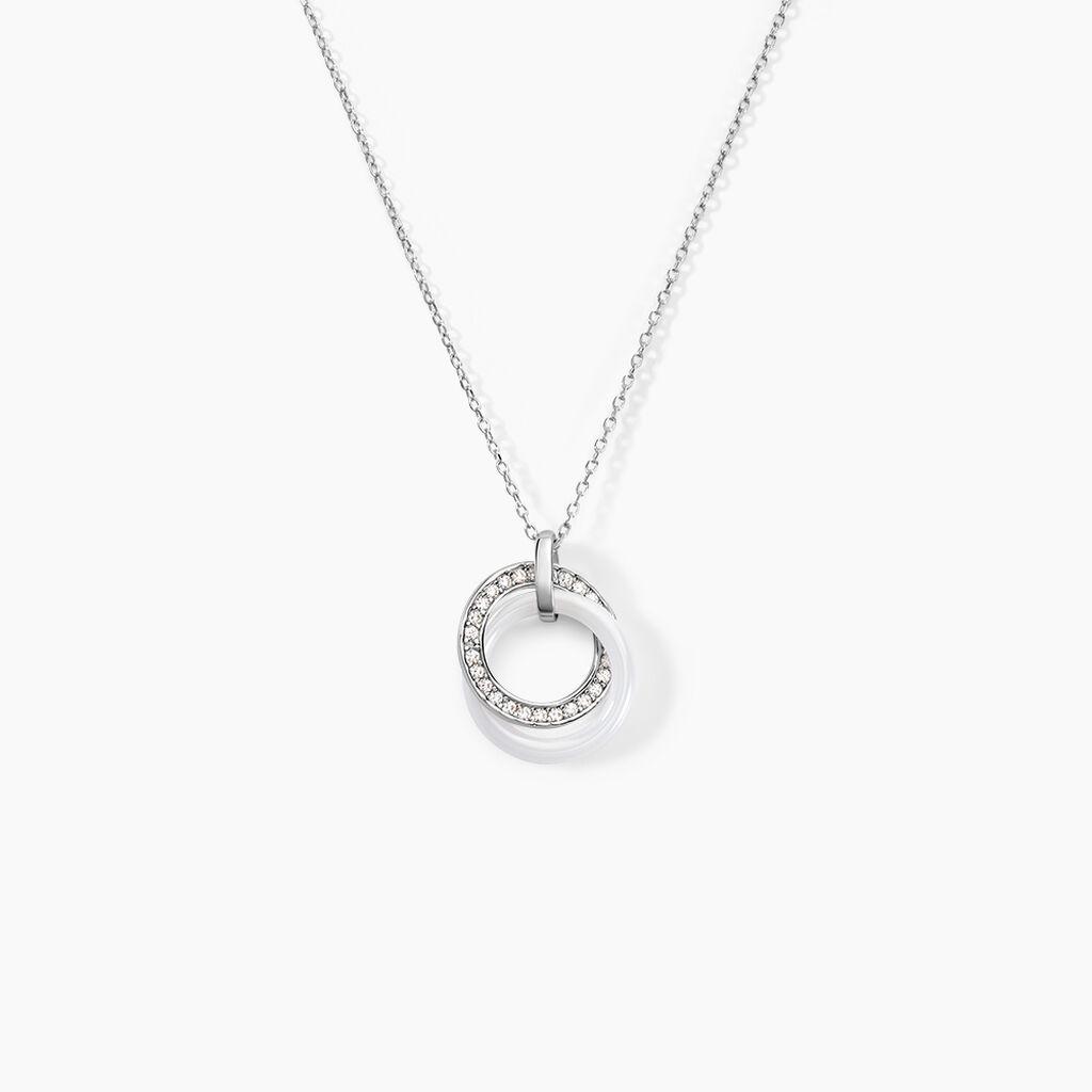 Collier Argent Blanc 925/1000 Cercles Entrelacés Céramique Blanche Oxydes De Zirconium Micro Serti Maille Forcat 42+3cm