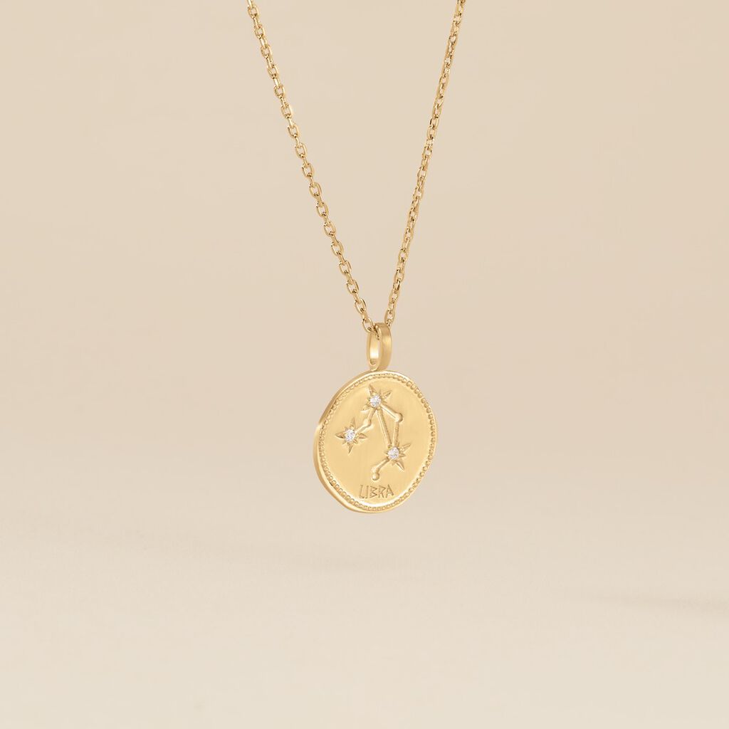 Collier Plaqué Or Jaune Pastille Mate Signe Astrologique Balance Oxydes De Zirconium Chaine Forcat 50cm