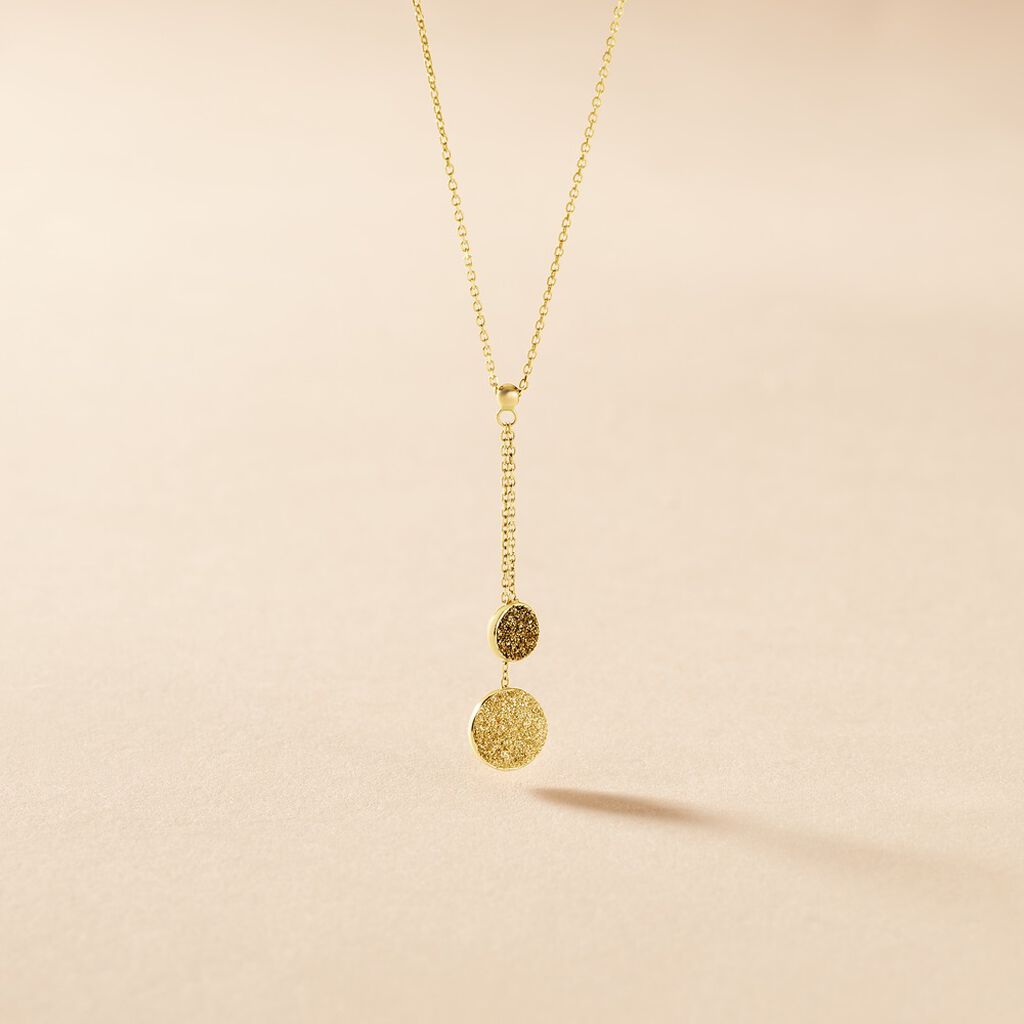 Collier Or Jaune 375/1000 Double Pastilles Glitter Dore Et Bronze Maille Jaseron 40+2cm