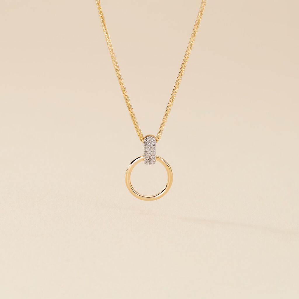 Collier Or Jaune 375/1000 Cercle Diamants Et Maille Palmier 45cm