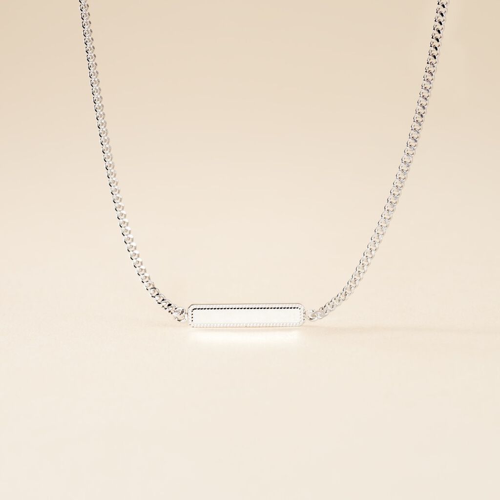 Collier Argent Blanc 925/1000 Plaque Rectangulaire Bordures Perlees Maille Gourmette 45cm