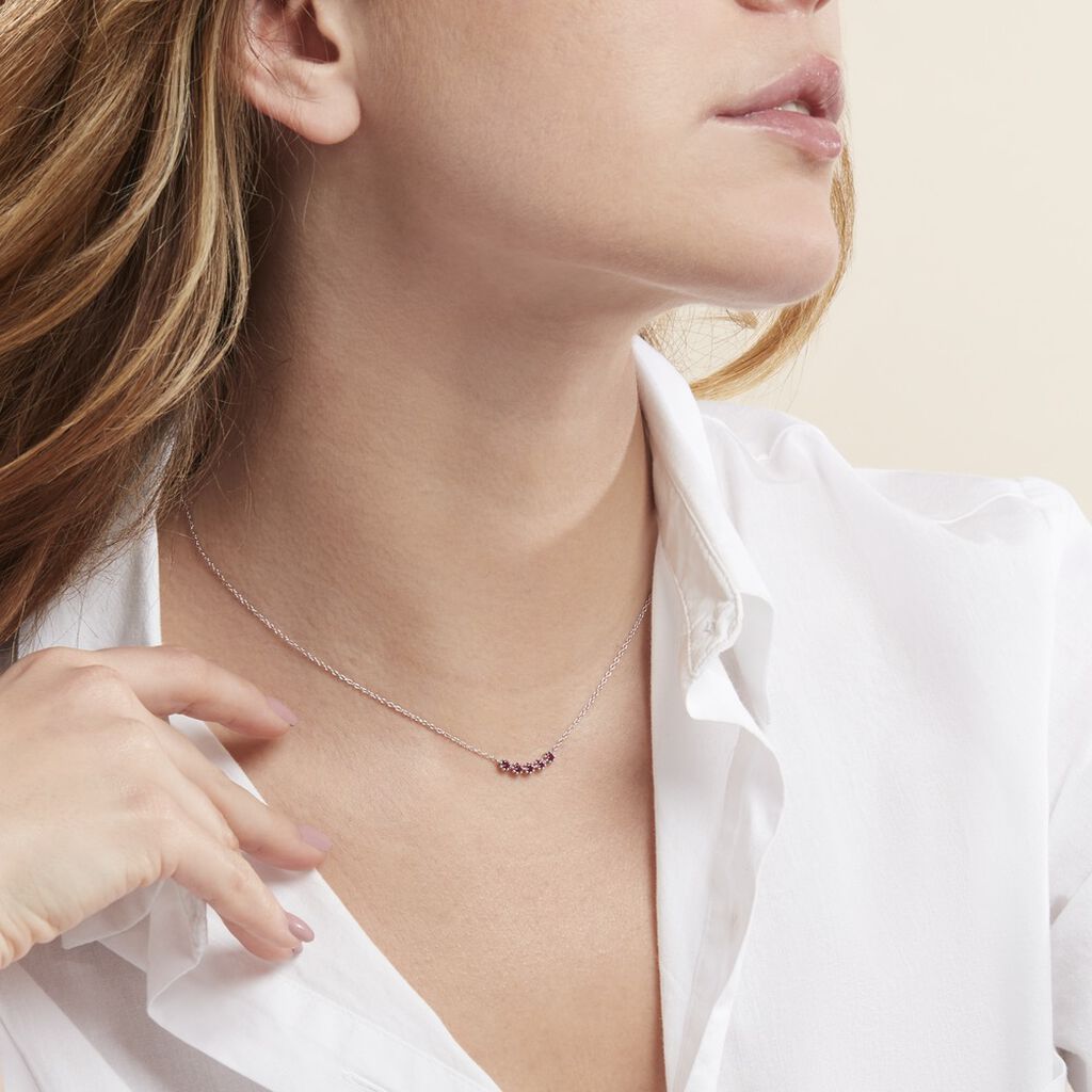 Collier Argent 925/1000 5 Oxydes De Zirconium Rouges Serti Griffes Effet Perlé Maille Forçat 45cm