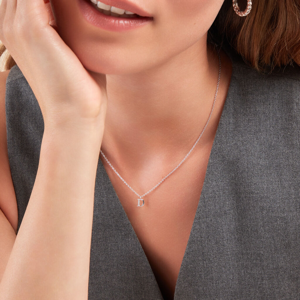 Collier Argent Blanc 925/1000 Lettre D Semi Pavage Oxydes De Zirconium Maille Forçat 38+3cm