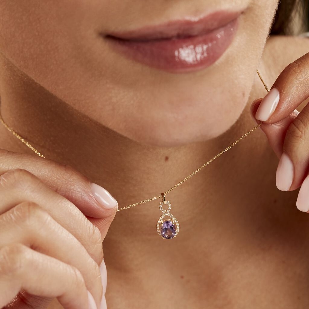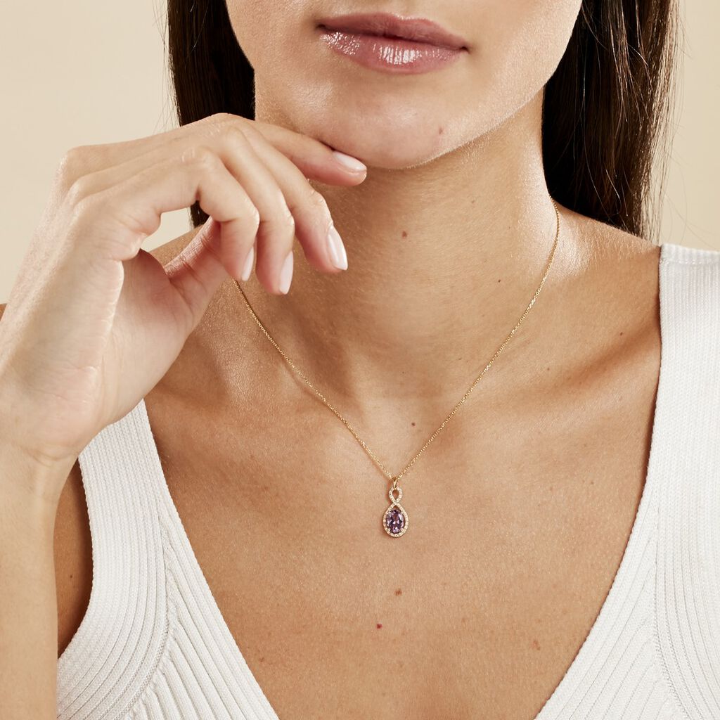 Collier Passion Or Jaune Amethyste Et Oxyde De Zirconium