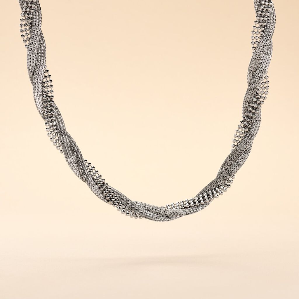 Collier Argent Blanc 925/1000 Maille Entrelacee Filet Et Boule Diamante 44cm