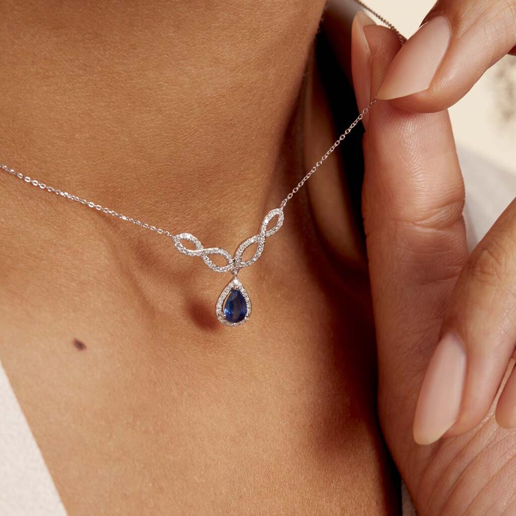 Collier Or Blanc 375/1000 Sissi Saphir Et Diamants 42cm