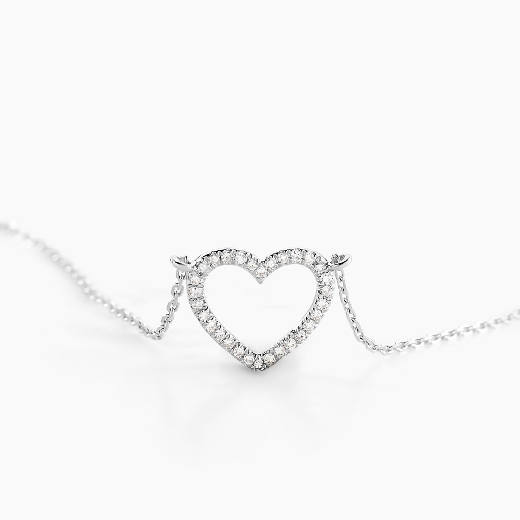 Collier Or Blanc 375/1000 Forme Cœur Diamants 42cm