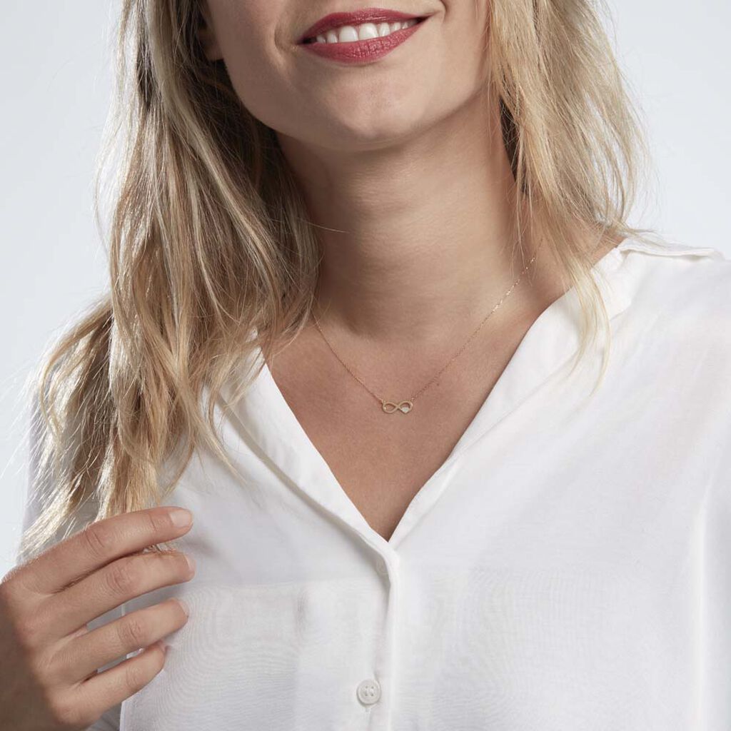 Collier Or Jaune 375/1000 Infini Et Cœur Glitter Argente Maille Jaseron 40+2cm