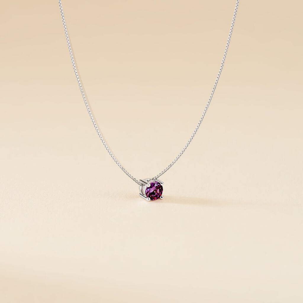 Collier Solitaire Argent Blanc 925/1000 Oxyde De Zirconium Violet Serti 4 Griffes Maille Venitienne 45cm