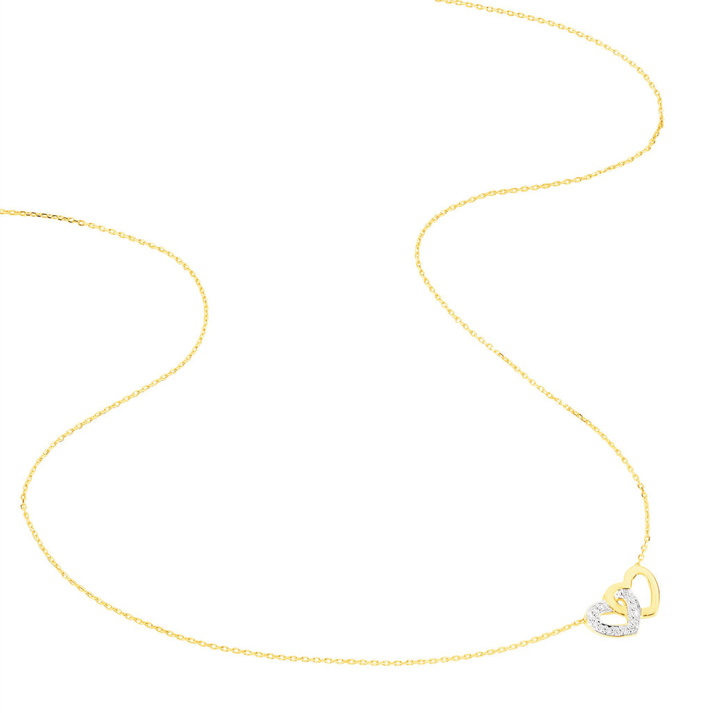 Collier Or Jaune 375/1000 Cœur Double Pavage Diamants 42cm