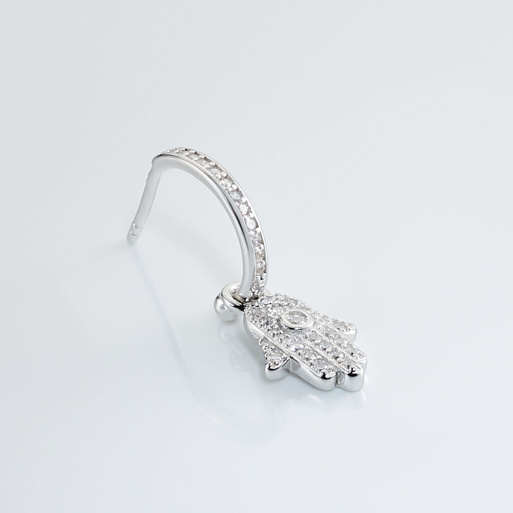 Creole Unitaire Argent Blanc 925/1000 Main De Fatma Pavage Oxydes De Zirconium