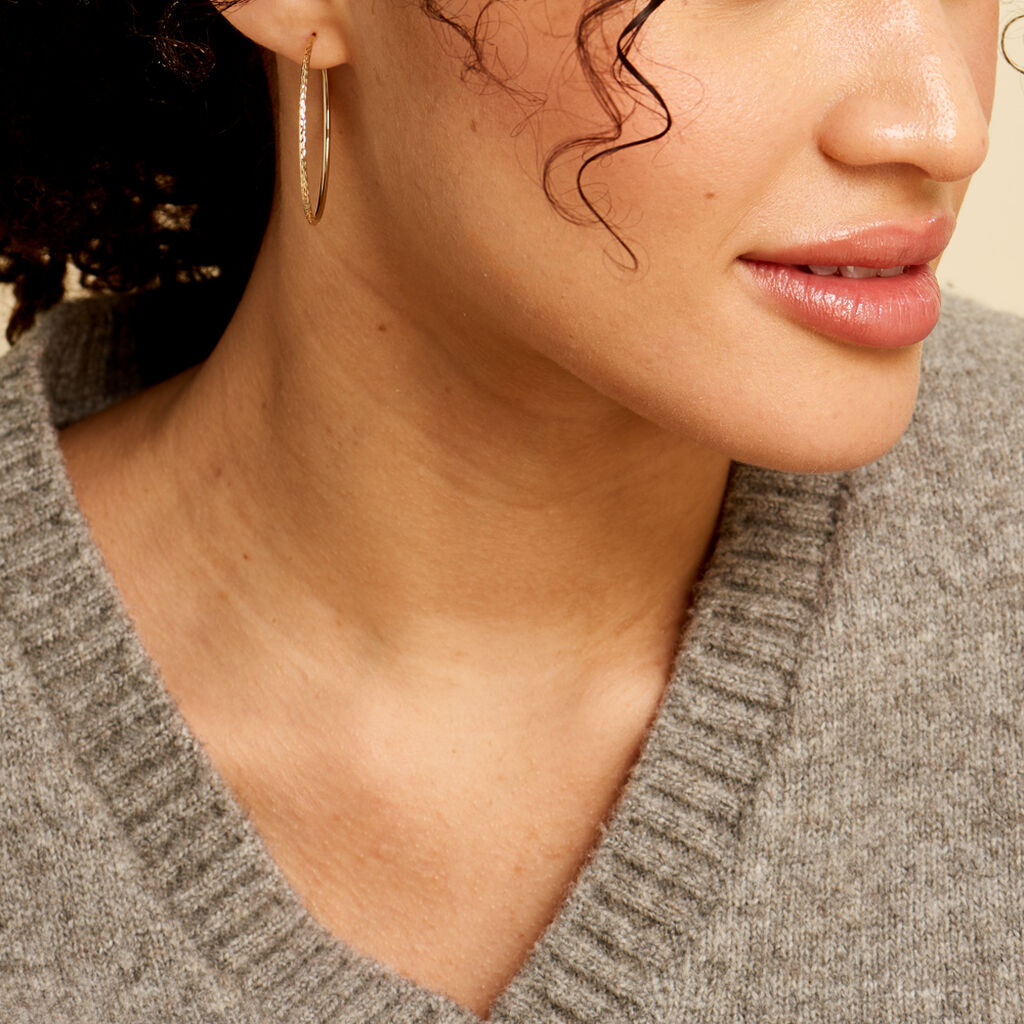 Créoles Or Jaune 375/1000 Flexibles Effet Diamanté Largeur 1.3mm Diametre 35mm