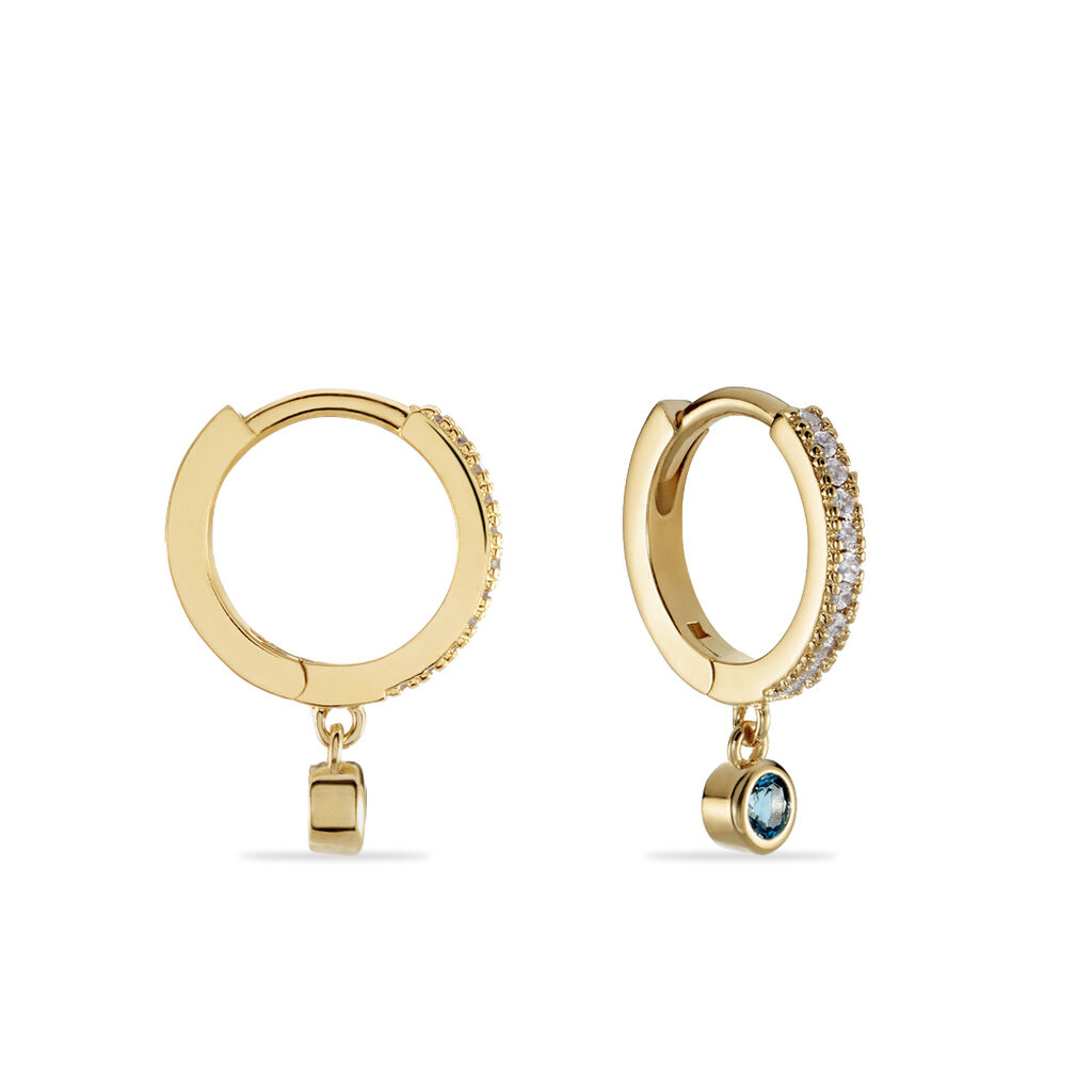 Creoles Plaque Or Jaune Pampilles Pierres Bleues Et Pavage Oxydes De Zirconium Diametre 10mm