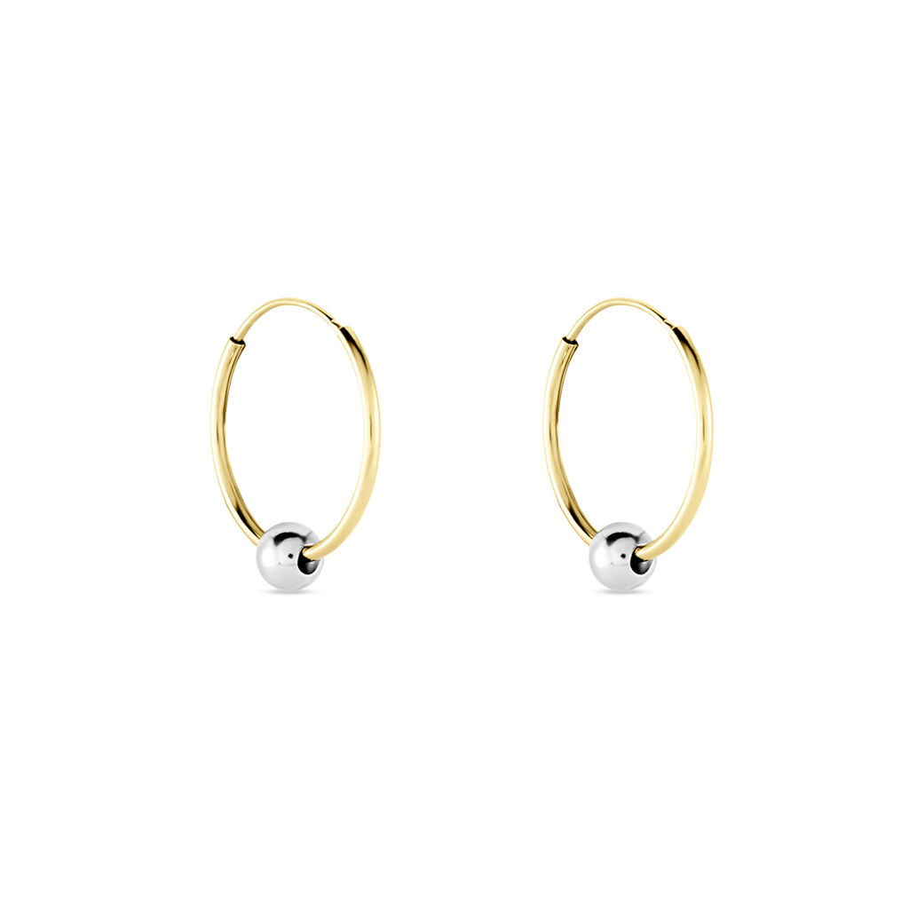 Créoles Or Bicolore 375/1000 Fil Flexible Lisse épaisseur 0.8mm Boule Diamètre 11mm