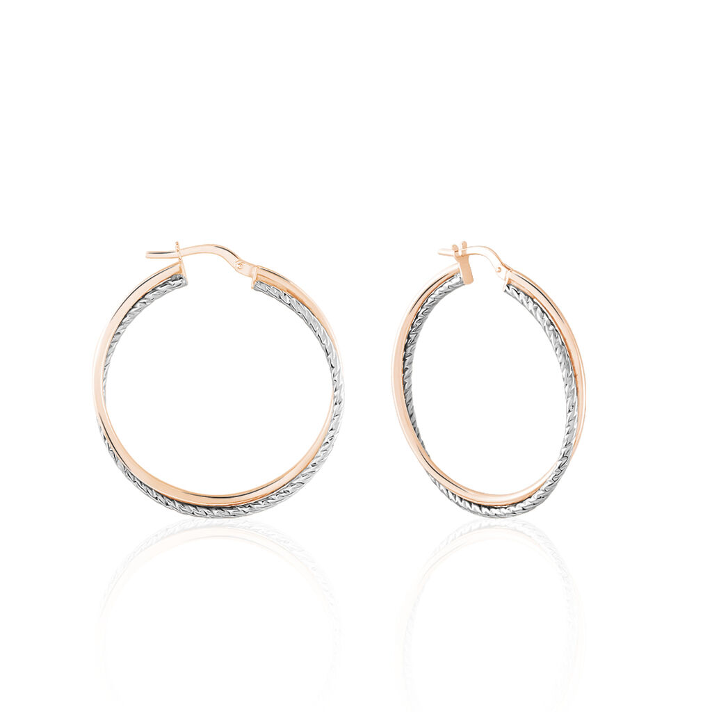 Créoles Or Bicolore Rose Et Blanc 375/1000 Croisées Fils Ronds Lisse Et Torsadé Largeur 1.5mm Diamètre 30mm
