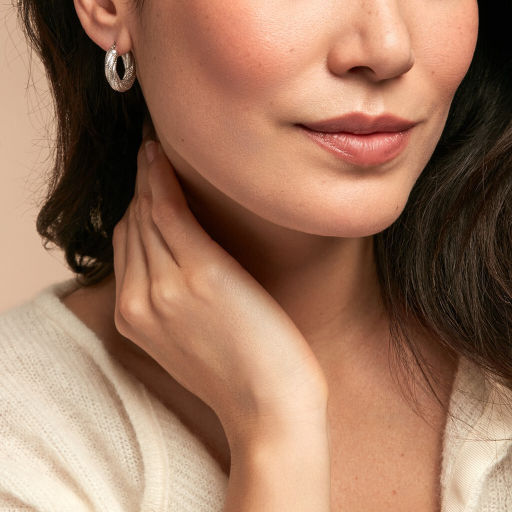 Créoles Argent Blanc 925/1000 Torsadées Et Diamantées Largeur Diamètre 10mm