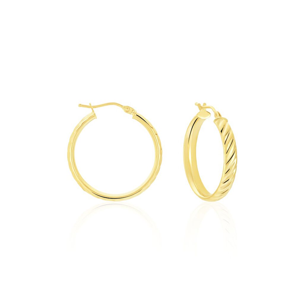 Créoles Or Jaune 375/1000 Fil Demi Jonc Strie Largeur 4mm Diamètre 20mm