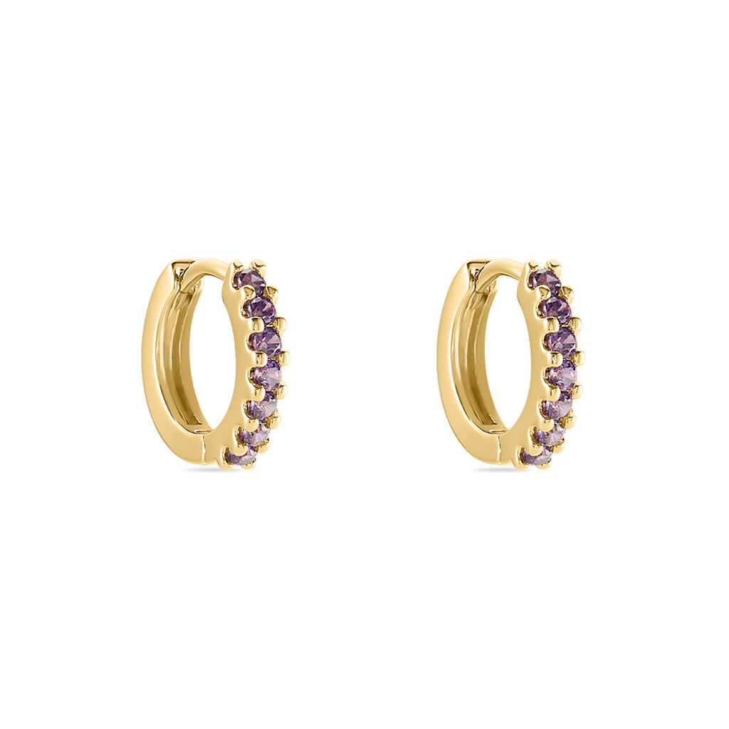Créoles Plaque Or Pavage Spinelles Synthétiques Violets Diamètre 12mm