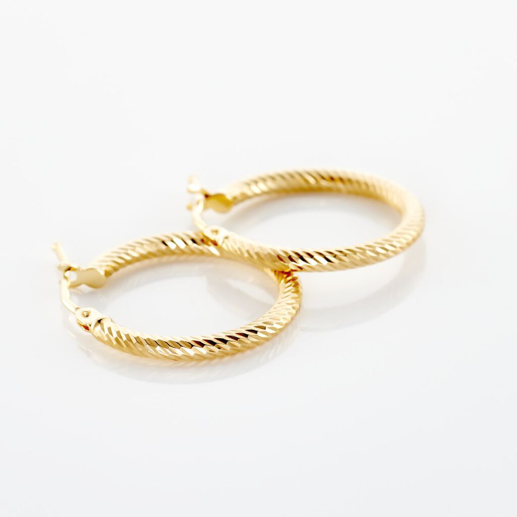 Créoles Or Jaune 375/1000 Fil Rond Effet Diamanté Largeur 2mm Diamètre 15mm