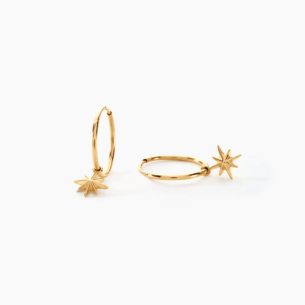 Creoles Or Jaune 375/1000 Pampille Etoile Fil Rond Flexible Lisse Diametre 12mm