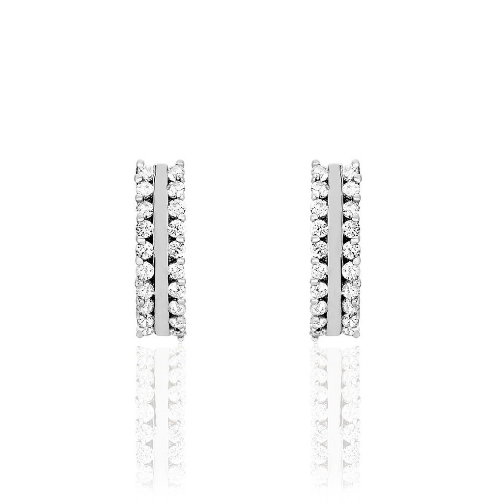 Boucles D'oreilles Demi Creoles Argent Blanc 925/1000 Double Rang Avec Oxydes De Zirconium