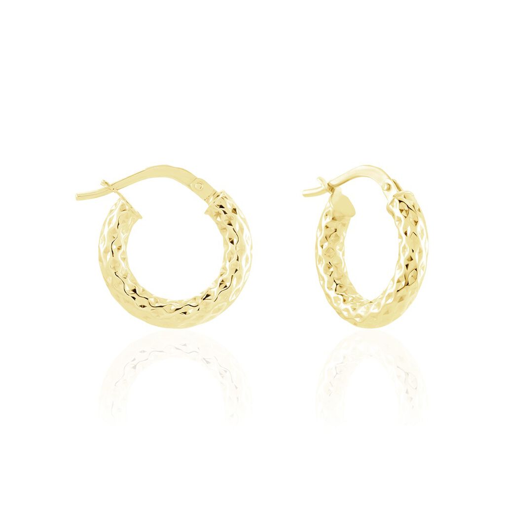 Créoles Or Jaune 375/1000 Fil Rond Martele Largeur 3mm Diamètre 10mm