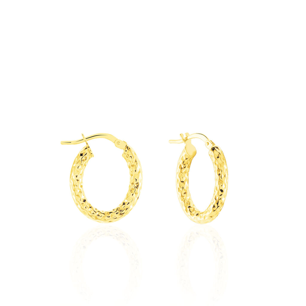 Créoles Or Jaune 375/1000 Ovales Fil Rond Martele Largeur 3mm Diamètre 13x10mm