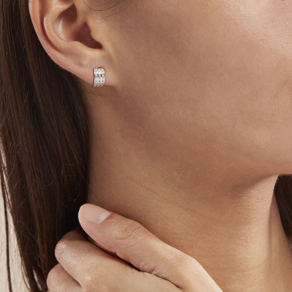 Demi Créoles Or Blanc 375/1000 Oxyde De Zirconium Serti Pavage