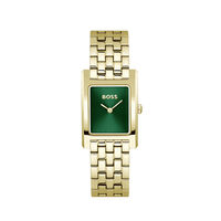 Montre Boss Lucy Acier Dore Rectangulaire Quartz 22mmx24mm Fond Argente Braceletcuir De Veau Marron 1502741