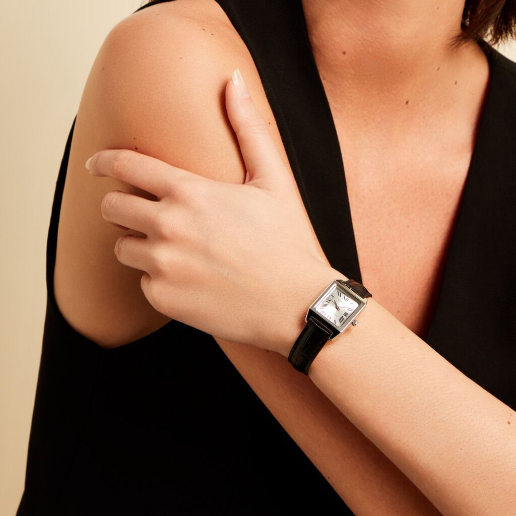 Montre Casio Casio Collection Acier Argente Rectangulaire Quartz 22mm Fond Gris Bracelet Cuir De Vache Noir Lisse Ltp-b150l-7b1ef