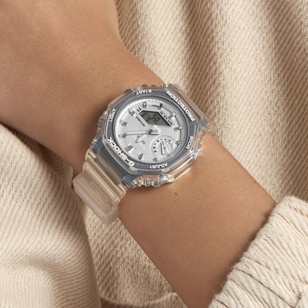 Montre Casio G-shock Résine Blanc Ronde Quartz Anadigital 42.9mm Fond Argent Bracelet Résine Blanc Gma-s2100sk-7aer