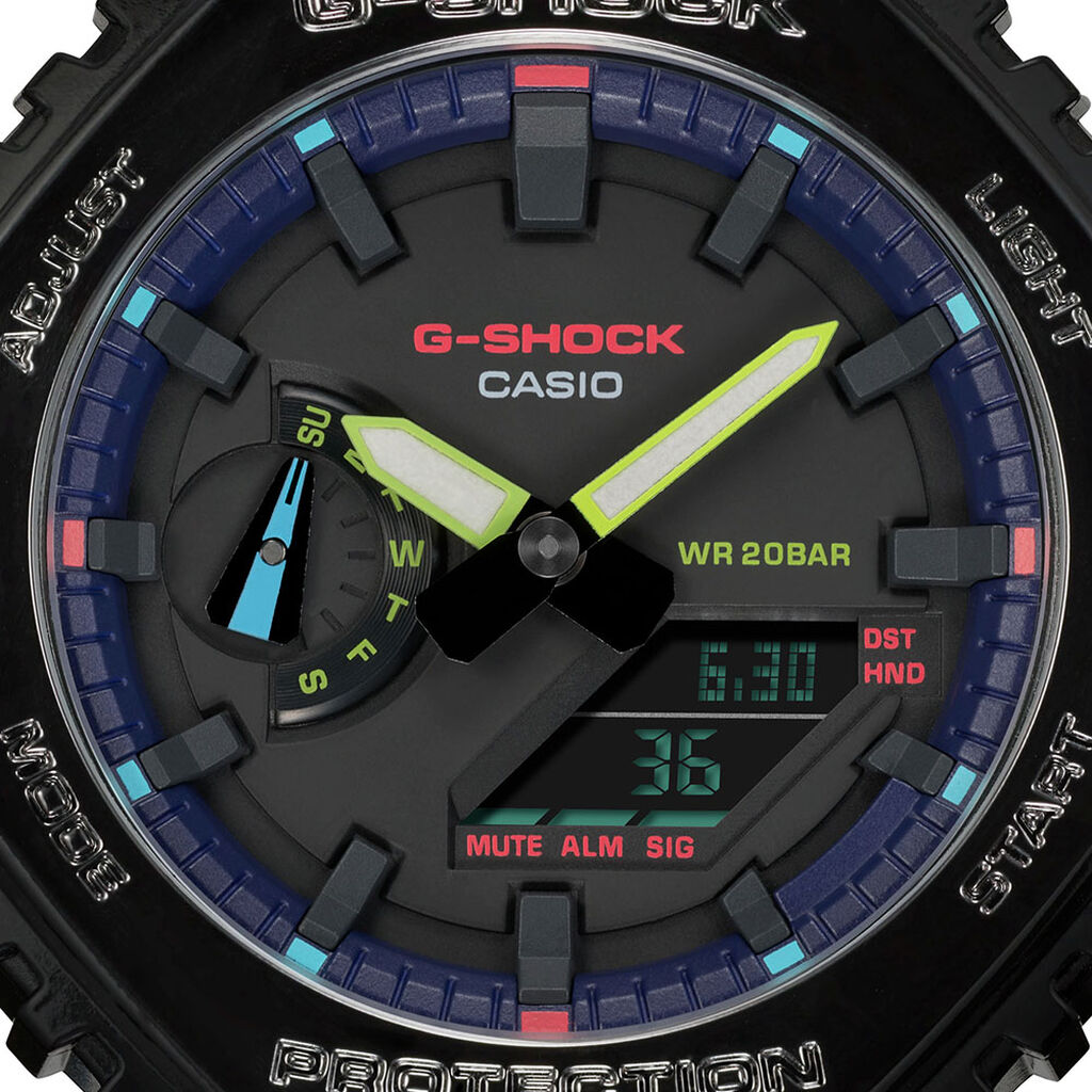 Montre Casio G-shock Carbone Noir Ronde Quartz 48.5mm Fond Noir Bracelet Résine Noir 2atm Ga-2100rgb-1aer