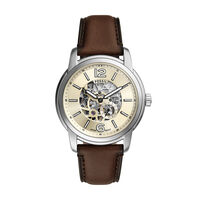 Montre Fossil Heritage Acier Argente Ronde Automatique 43mm Fond Bleu Bracelet Cuir De Vache Marron Me3263