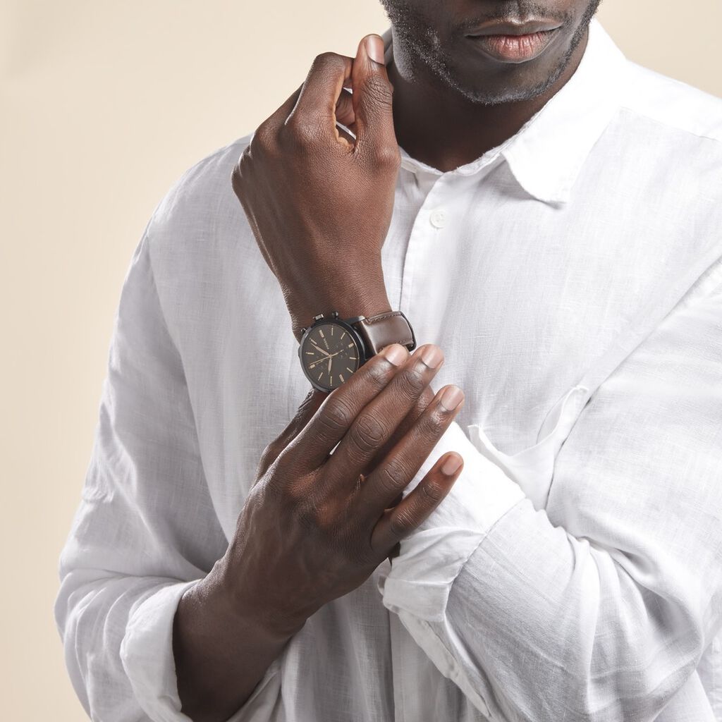 Montre Fossil Townsman Chrono Acier Noir Ronde Quartz Chronographe 44mm Fond Noir Bracelet Cuir Marron Fs5437