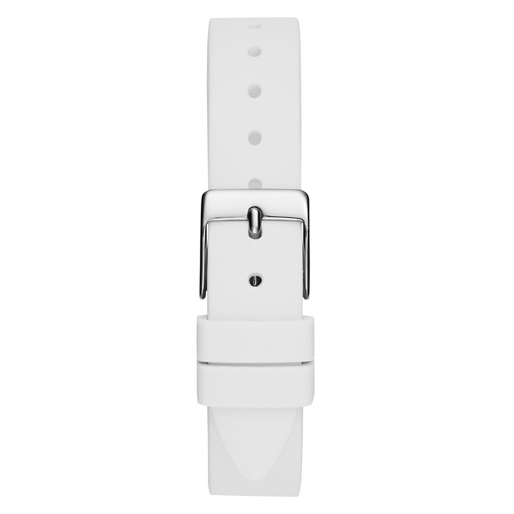 Montre Guess Mini Luna Acier Argenté Ronde Quartz 30mm Lunette Dentelee Fond Argenté Bracelet Blanc Gw0724l1